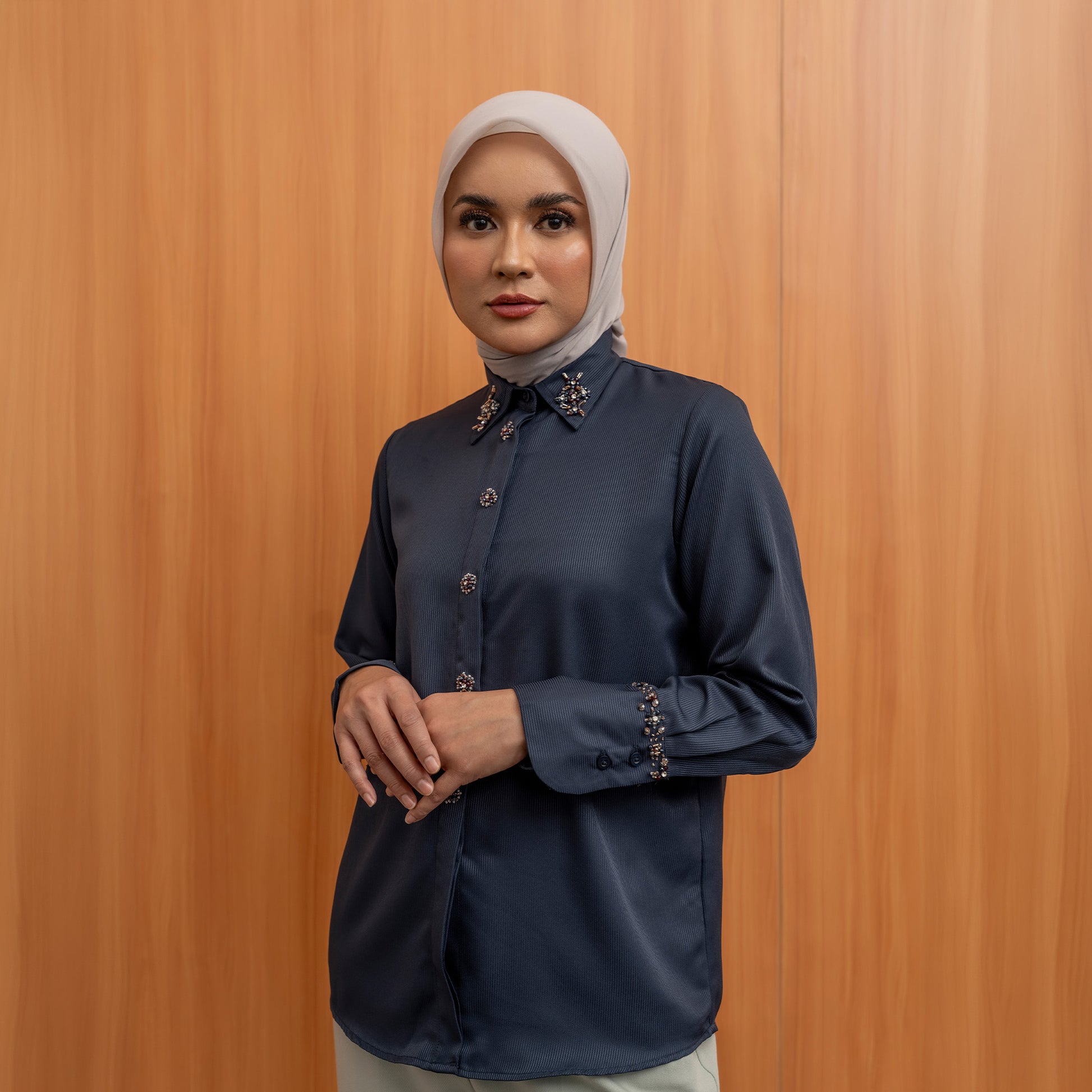 Bentuk pola manset lengan yang dibuat sedikit lebih panjang menjadikan tampilan kemeja ini tampak lebih elegant.
