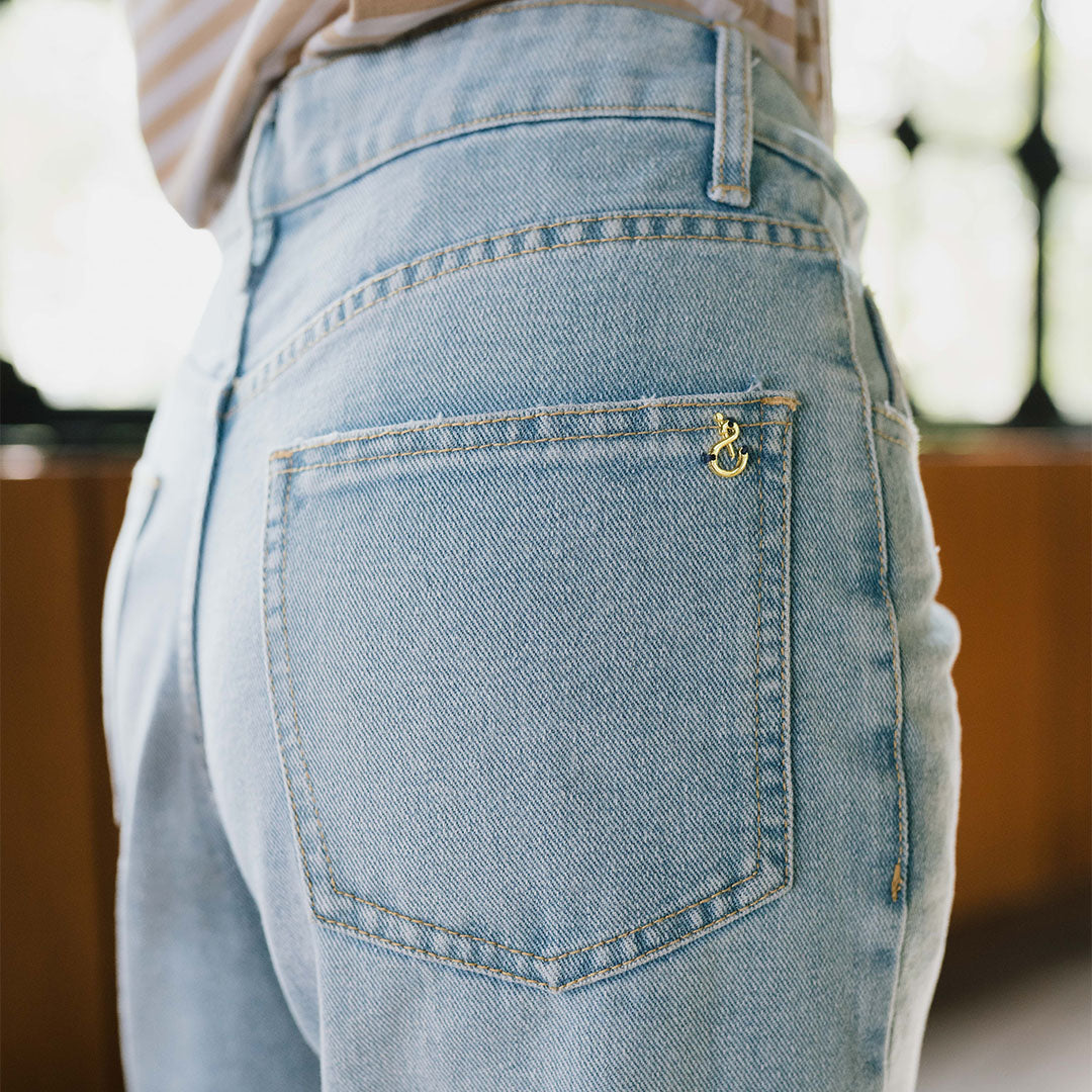 - Jeans dengan potongan timeless Mom's Jeans, membuat celana ini nyaman digunakan sehari-hari.