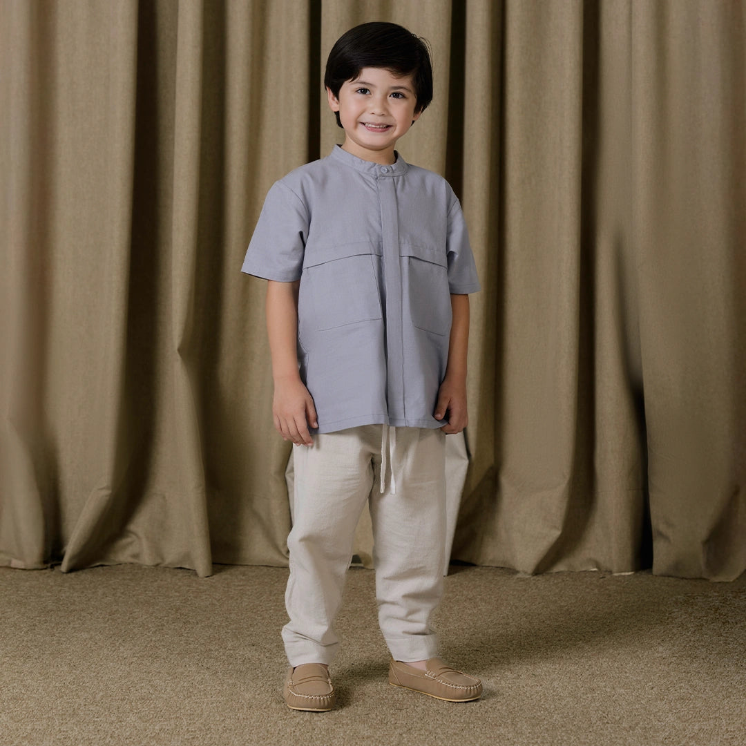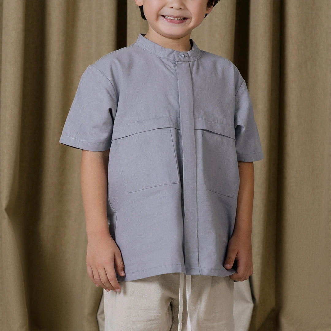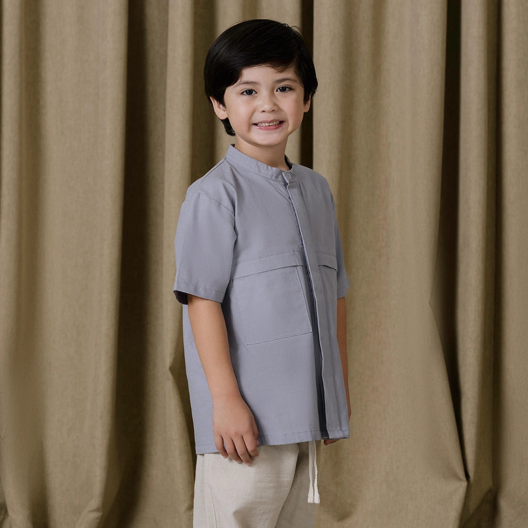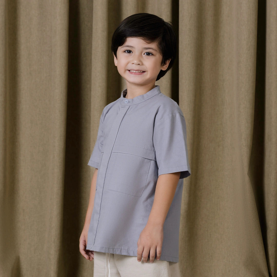 Kafie Top is a comfortable men's shirt with cut-and-sew details for an attractive look. The clean design with cut-and-sew accents creates a relaxed and warm impression. Featuring two big pockets, it's both stylish and practical. With short sleeves and big pockets, this top offers a casual yet semi-formal style, ideal for Raya celebrations.