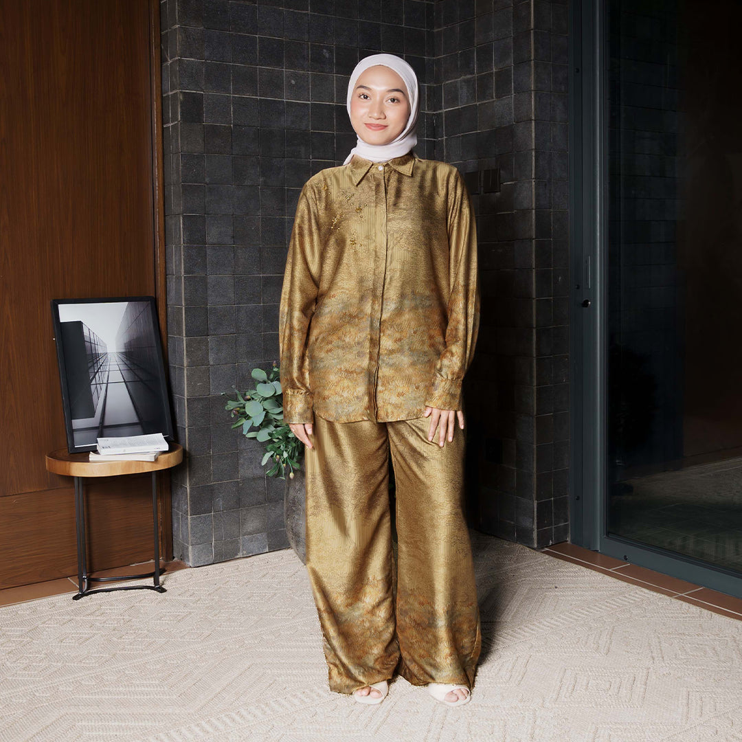 Lenia Top embodies understated elegance through its fluid silhouette and luxurious feel. Crafted from soft silk fabric, it features an intricate printed pattern that enhances its sophisticated charm. Delicate bead appliqués are thoughtfully placed to add subtle shimmer and texture, making it perfect for both refined daytime looks and graceful evening occasions.